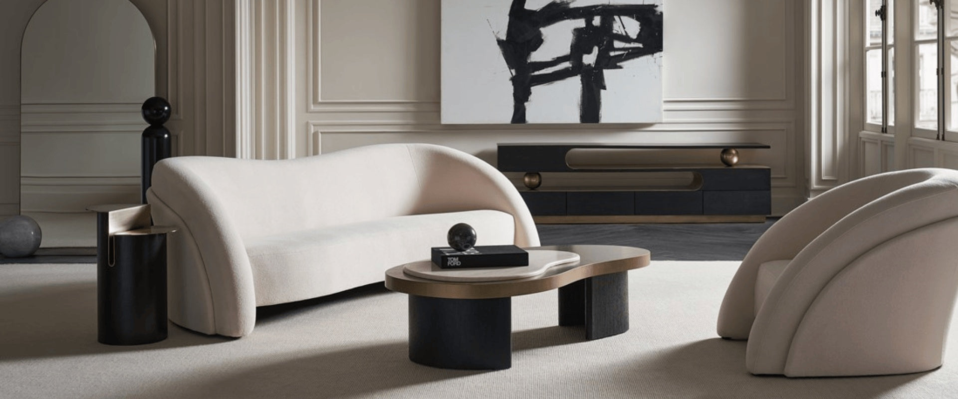 Espejo de Cuerpo Entero con Marco Abstracto Negro y Plateado